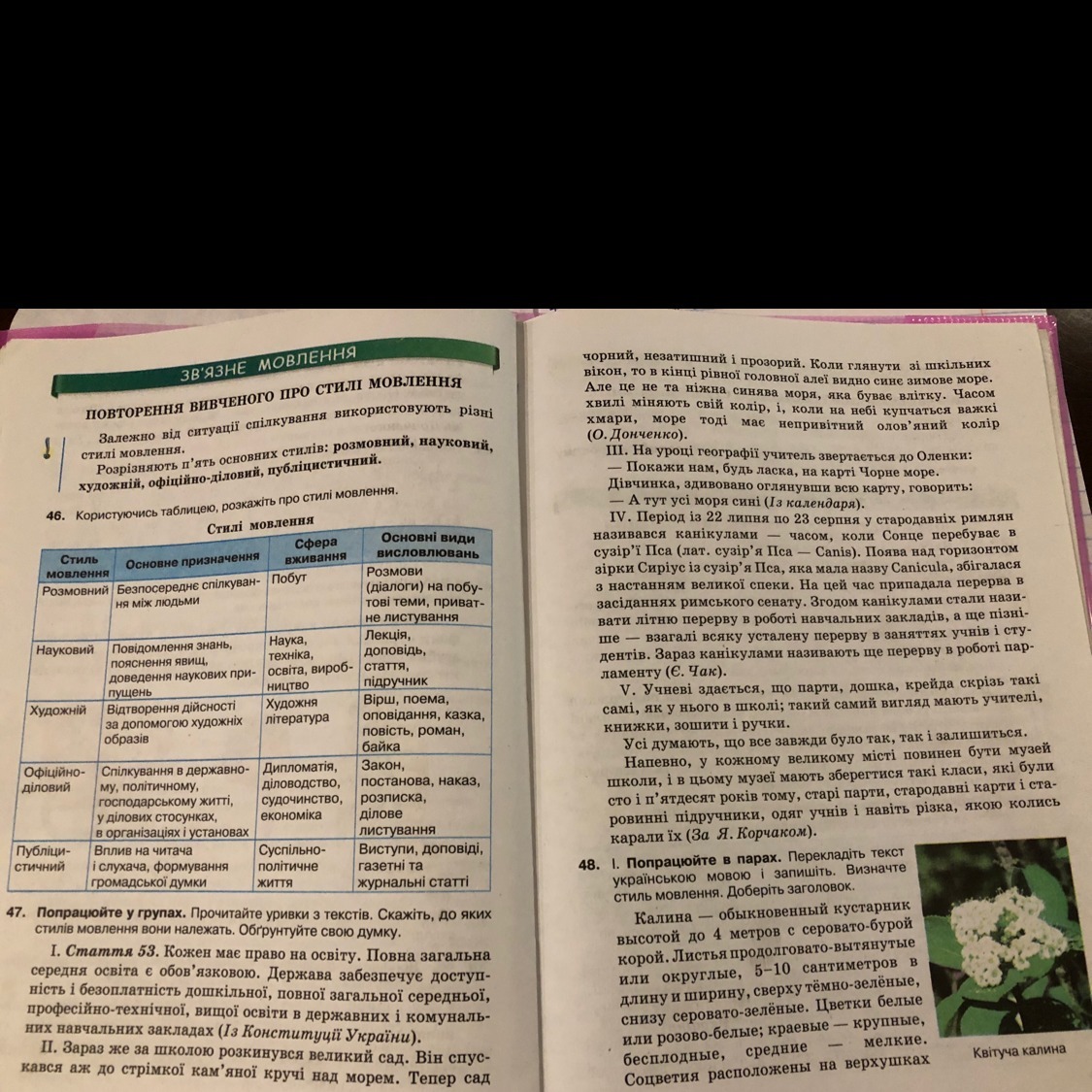 1. Офіційно-діловий. Починається зі "стаття 53" і уривок взято з Конституції, тобто, цей уривок - закон.
