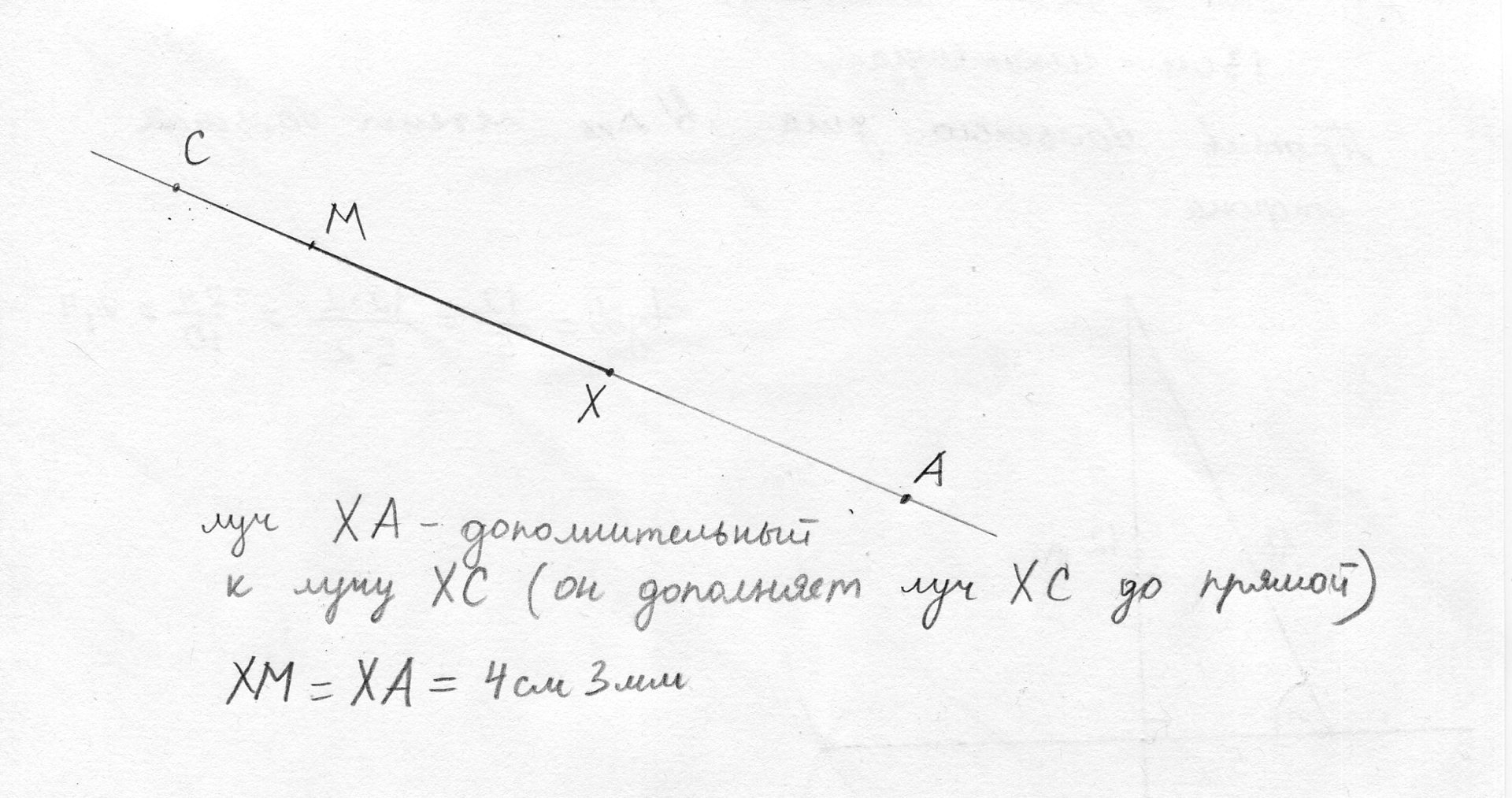 Начертите луч ХС.Постройте луч,дополнительный лучу ХС, и обозначьте его.На каждом луче отложите от его начала отрезок длиной 4см3мм