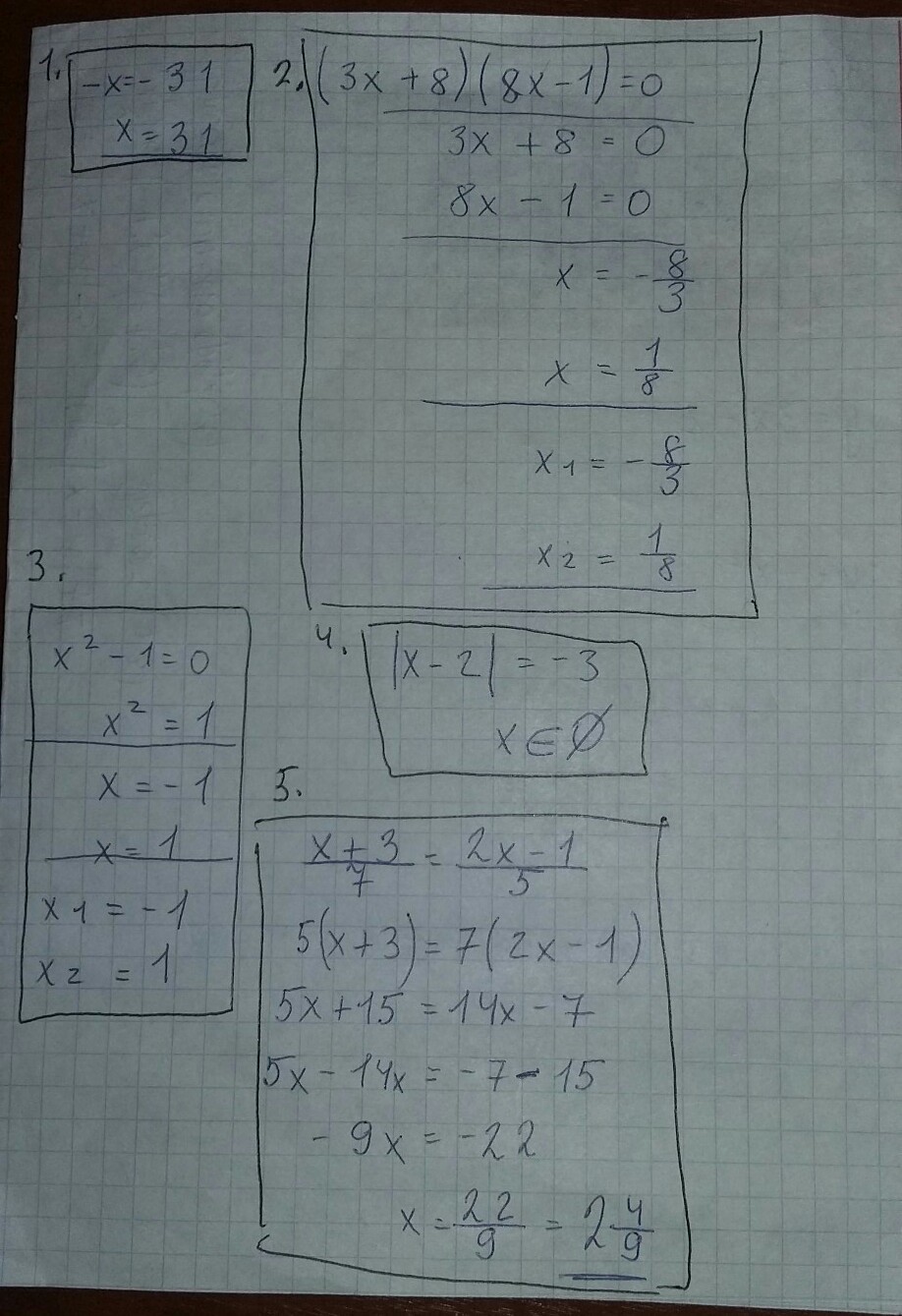 5) frac{x+3}{7}=frac{2x-1}{5}