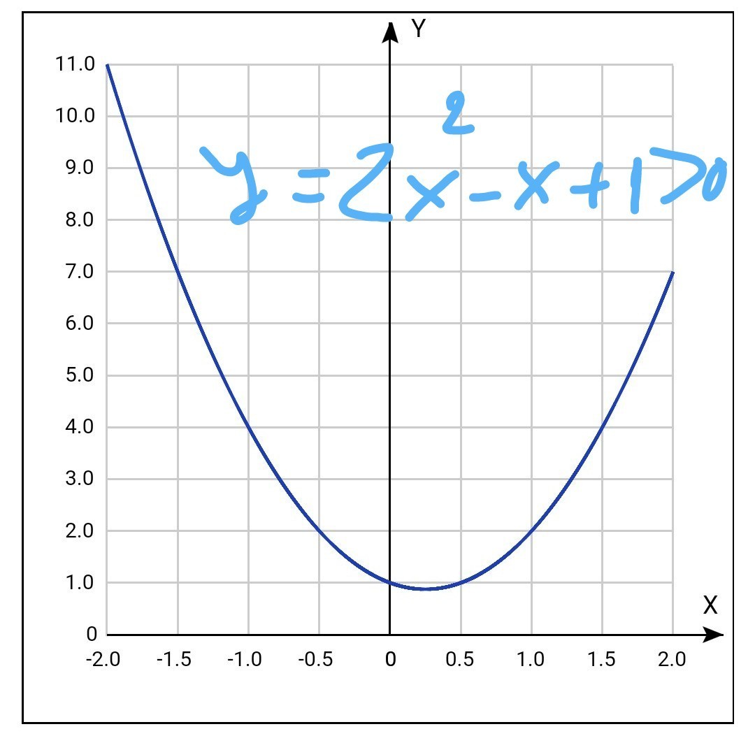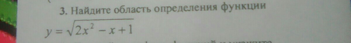 D = b² - 4ac = (-1)² - 4·2·1 = 1 - 8 = -7,