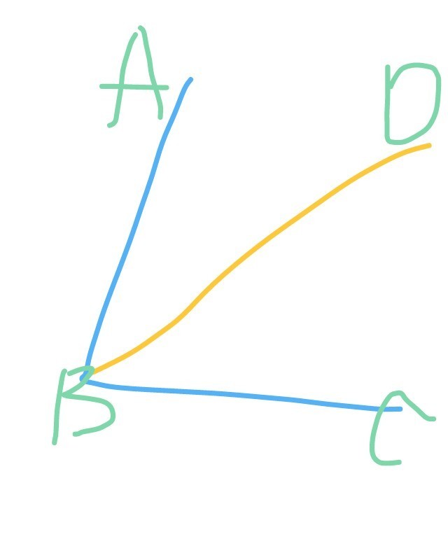 ВО-промінь(або бісектриса,що 'розбиває' навпіл).Градусна міра кута дорівнює сумі градусних мір кутів, на які він розбивається променем, що проходить між його сторонами.