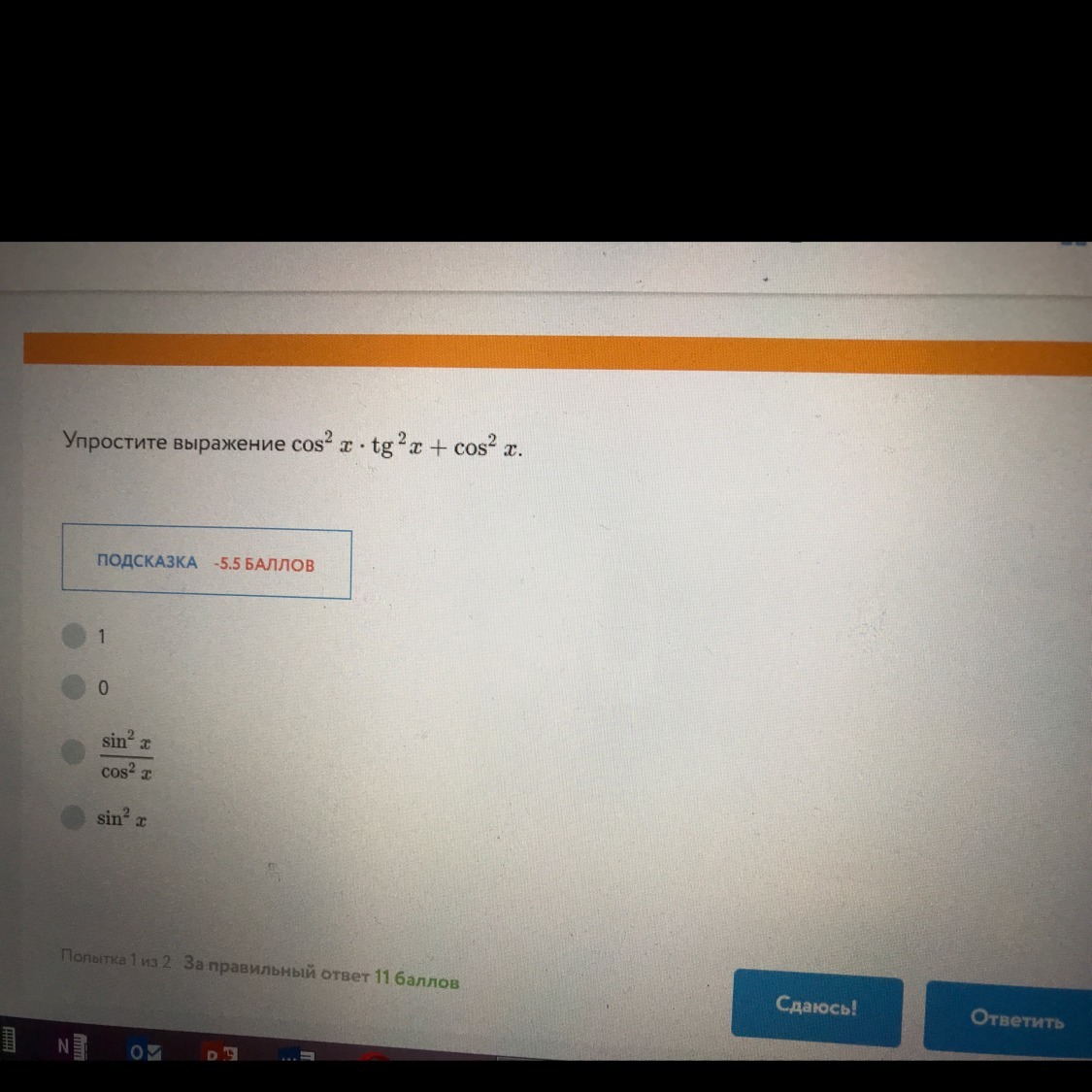 cos^2x * sin^2x / cos^2x + cos^2x = sin^2x+cos^2x = 1