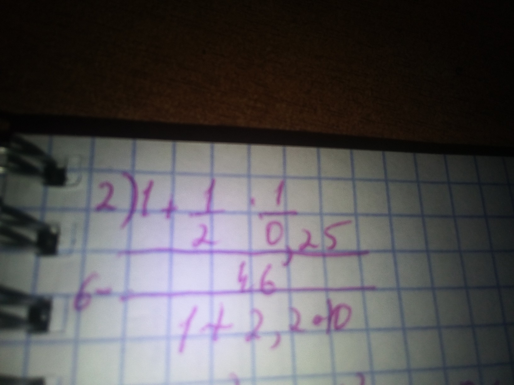 1) 1/2 x 1/0.25 = 1/0.5 2) 1 + 1/0.5 = 1 + 2 = 3 3) 2.2 х 10 = 22 4) 1 + 22 = 23 5) 46/23 = 2 6) 6 - 2 = 4 7) 3/4 = 75/100 = 0,75 Ответ: 0,75