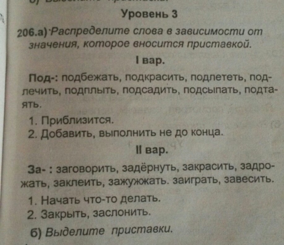 Распределите слова в зависимости от значения, которое вносится приставкой. пожалуйста помогите ответ