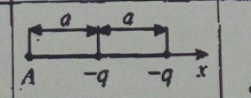 Найдите напряженность Ex в точке А электростатического поля, созданного двумя точечными зарядами.