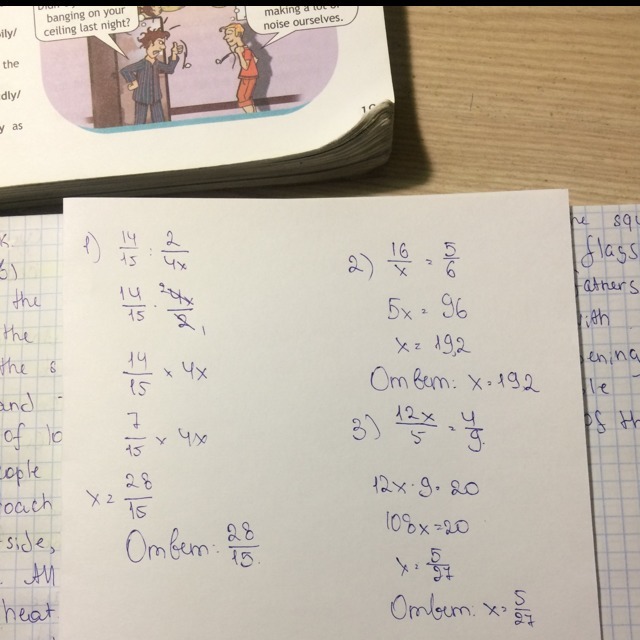 2) 16:x=5:6 5х=16*6 5х=96 Х=96:5 Х=19,2 3) 12x:5=4:9 12х*9=5*4 108х=20 Х=20:108 Х=5/27