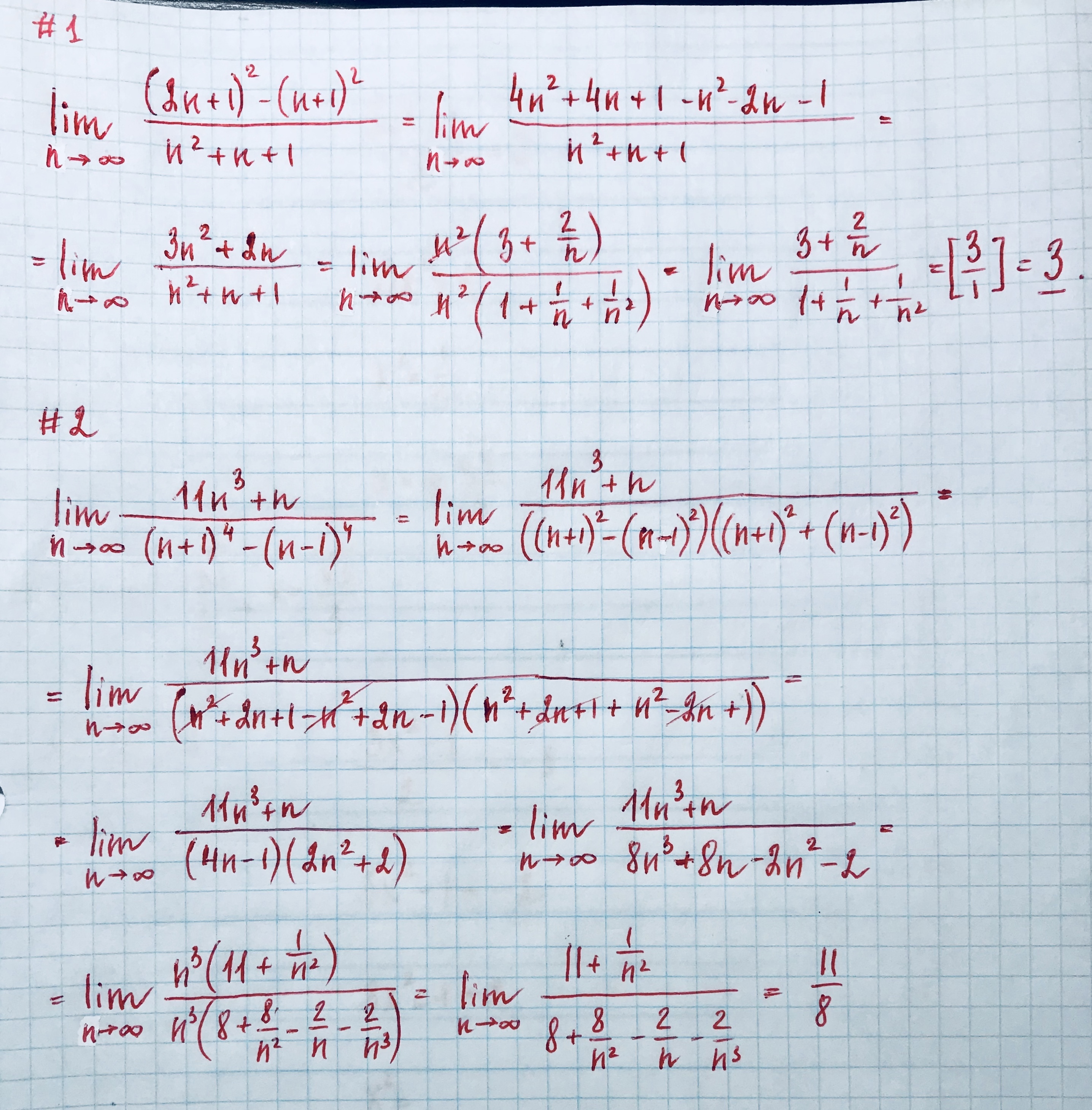 2)lim (11n^3+n)/((n+1)^4-(n-1)^4)