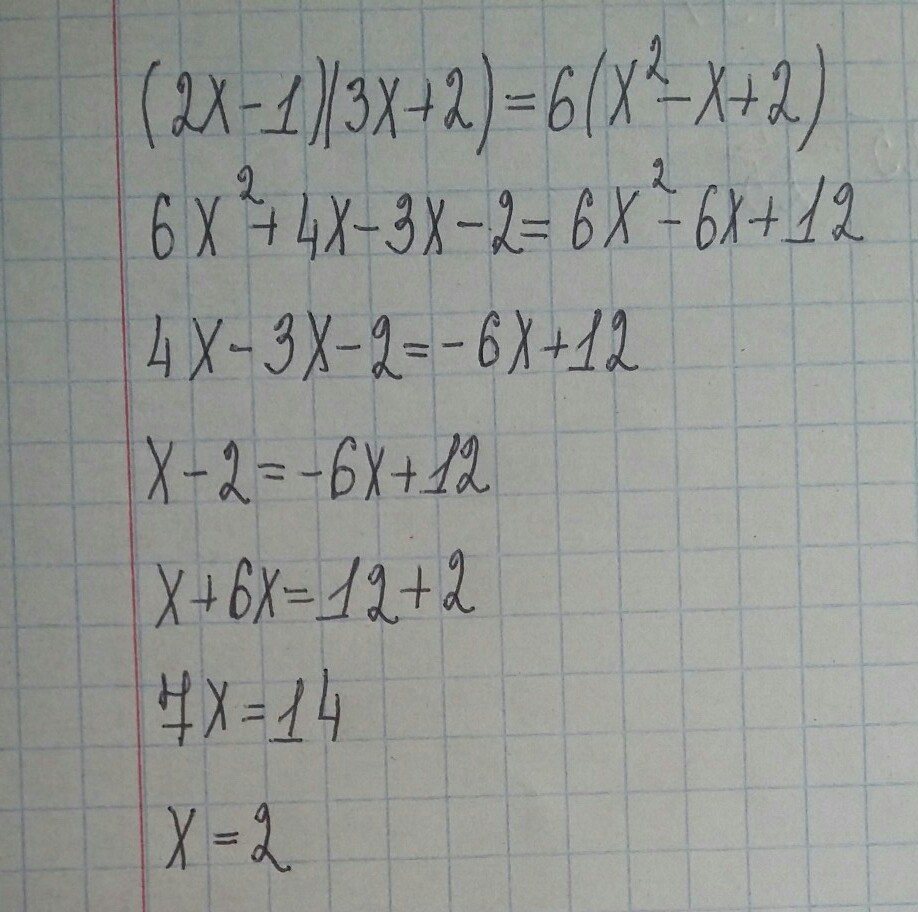 - 6X^2+4x-3x-2=6x^2-6x+12