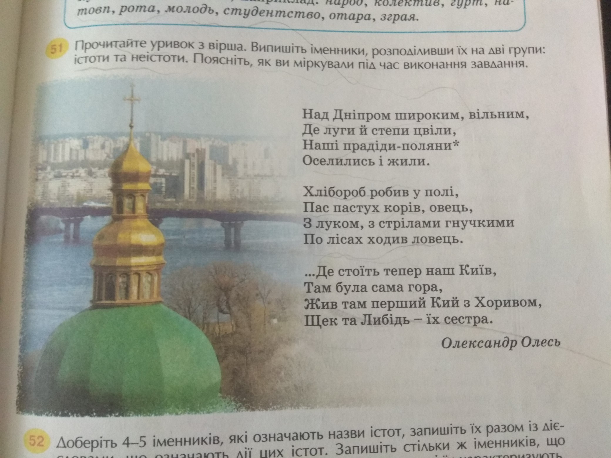 Днепр, луга, степь, поле, лук, стрелы, лес, Киев, гора - неживое существительное.