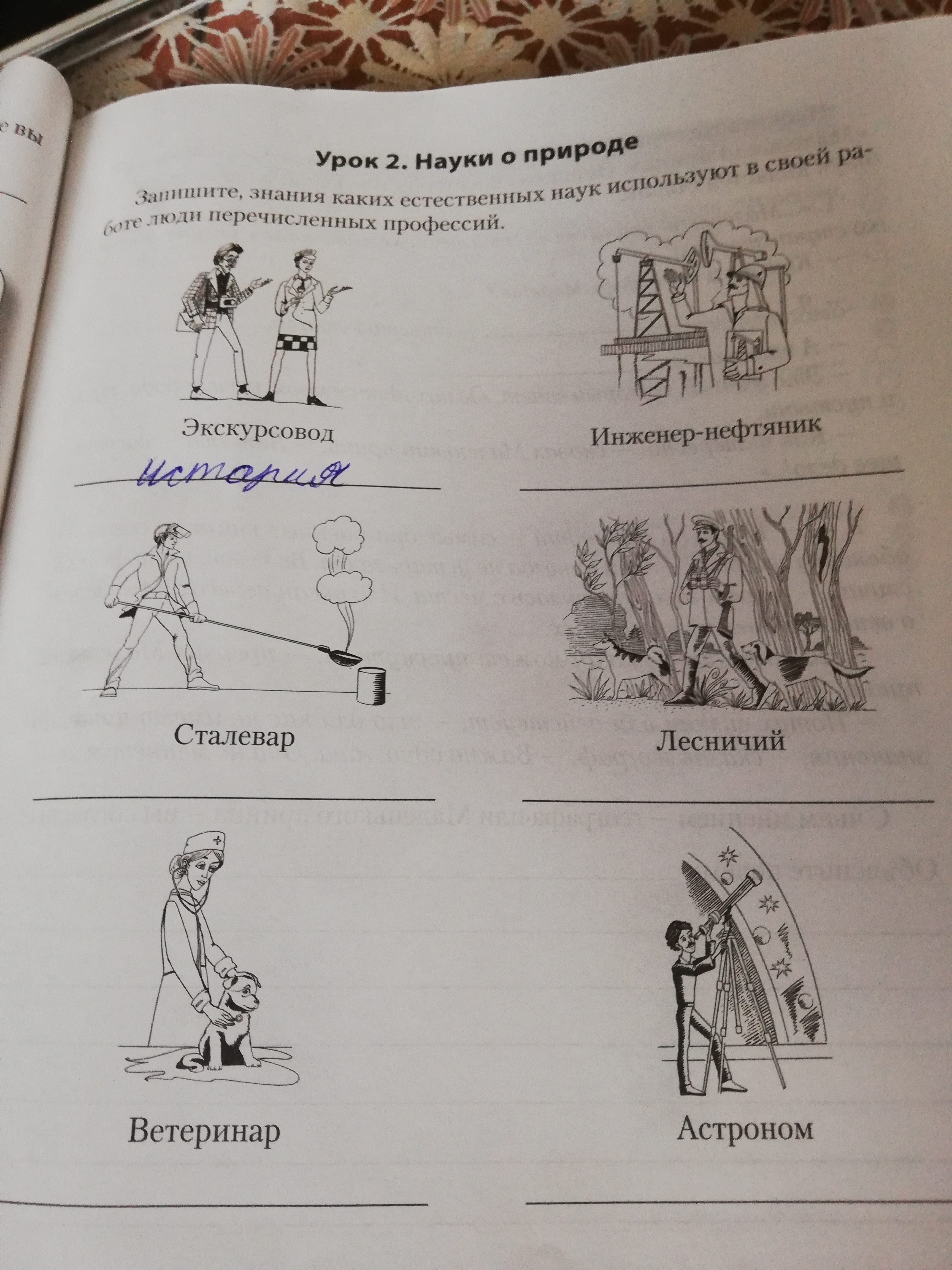 Запишите знания каких естественных наук используют в своей работе перечисленных професий