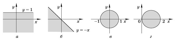 Битовый код для точки с координатами ( x , y ) состоит из четырех битов, каждый из которых показывает, входит ли точка в одну из заштрихованных областей. Первый по счёту бит определяет, входит ли точка в область а (см. рисунок), второй третий и четвёртый биты отвечают за попадание точки соответственно в области б , в и г . Напишите программу, которая выводит битовый код точки с заданными координатами.