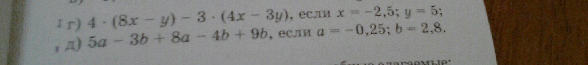г) 32x - 4y - 12x + 9y = 20x + 5y = 20*-2,5 + 5*5 = 75