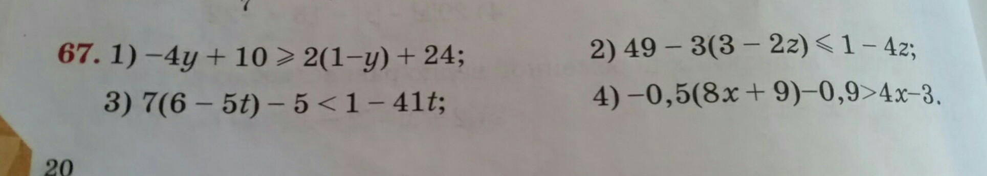 1) -4у + 10 > 2(1 - у) + 24