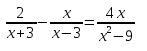 получается 2(x - 3) - x (x + 3) = 4x . дальше решаем как обычно