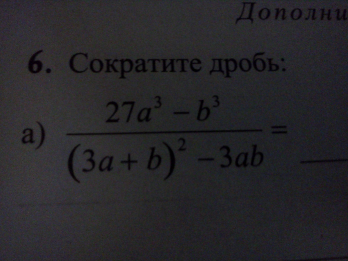 (3a-b)(9a^2+3ab+b^2)9a^2+6ab+b^2-3ab=(3a-b)(9a^2+3ab+b^2)9a^2+3ab+b^2=