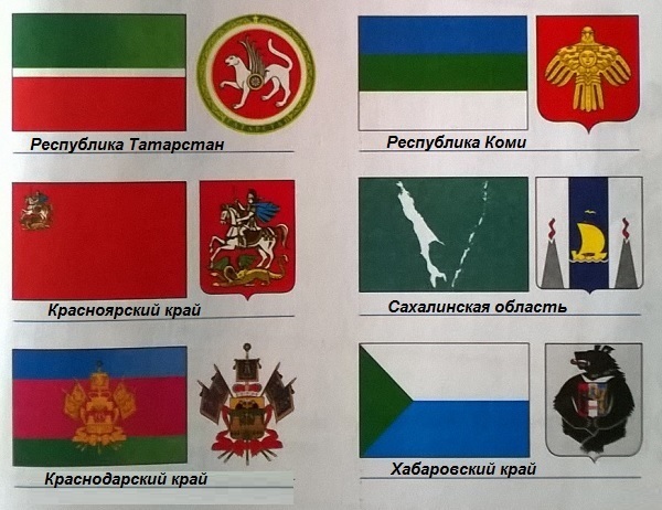 С помощью дополнительной летературы и Интернета определи и подпиши флаги и гербы субъектов Российской Федерации
