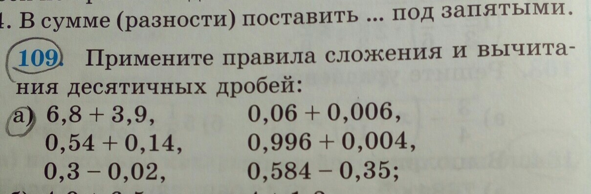 6,8+3,9=10,7 0,54+0,14=0,68 0,3-0,02=0,28 0,06=0,006=0,066 0,996+0,004=1 0,584-0,35=0,234