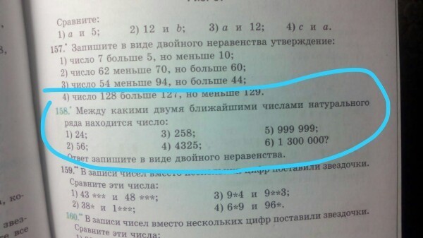 5) 999998<999999<1000000. Ответ 999998 и 1000000;