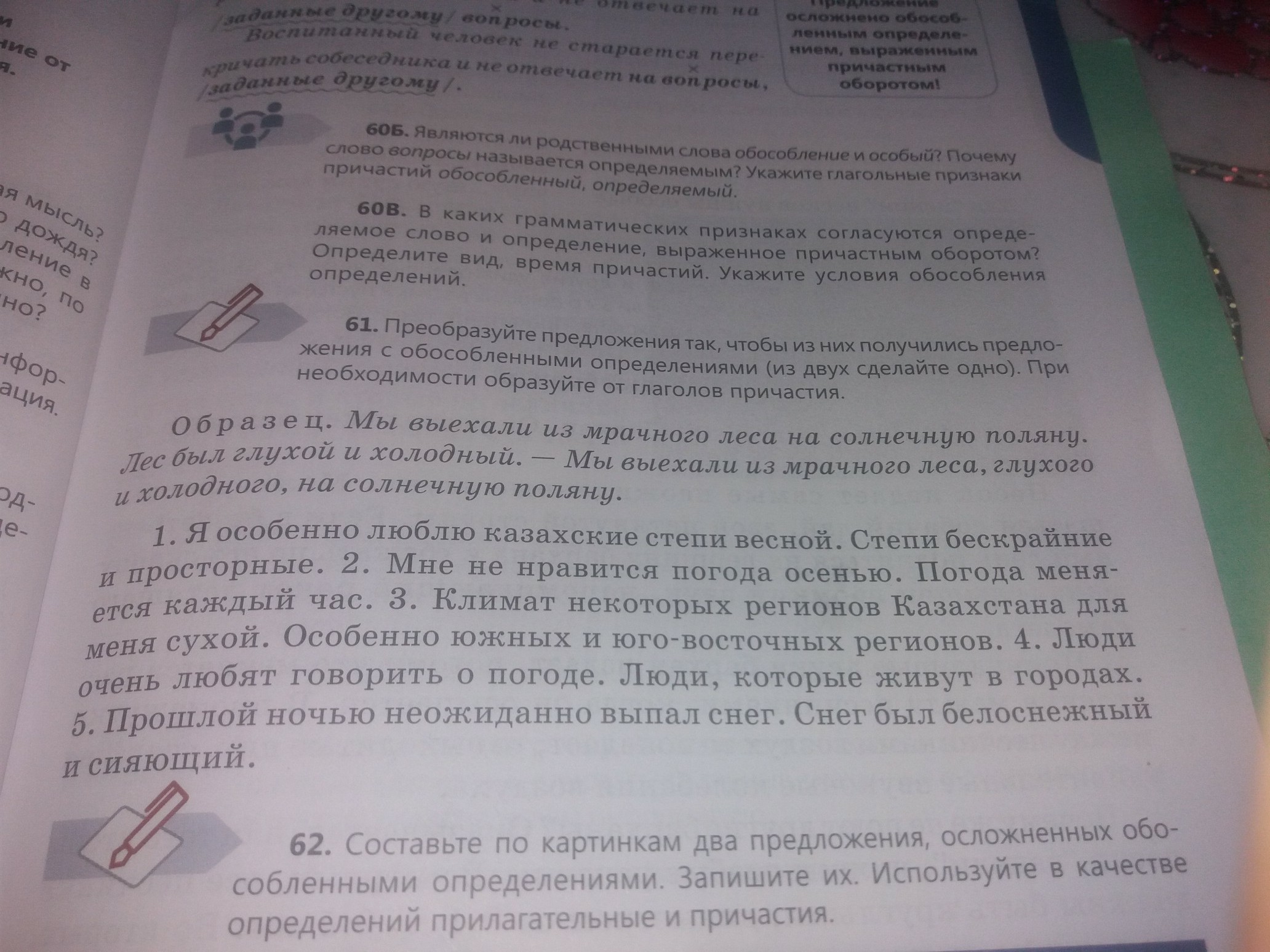 русский язык седьмой класс страница 37 упражнение 61 Преобразуйте предложения так чтобы из них получилось предложение с обособленными определениями из 2 сделать 1