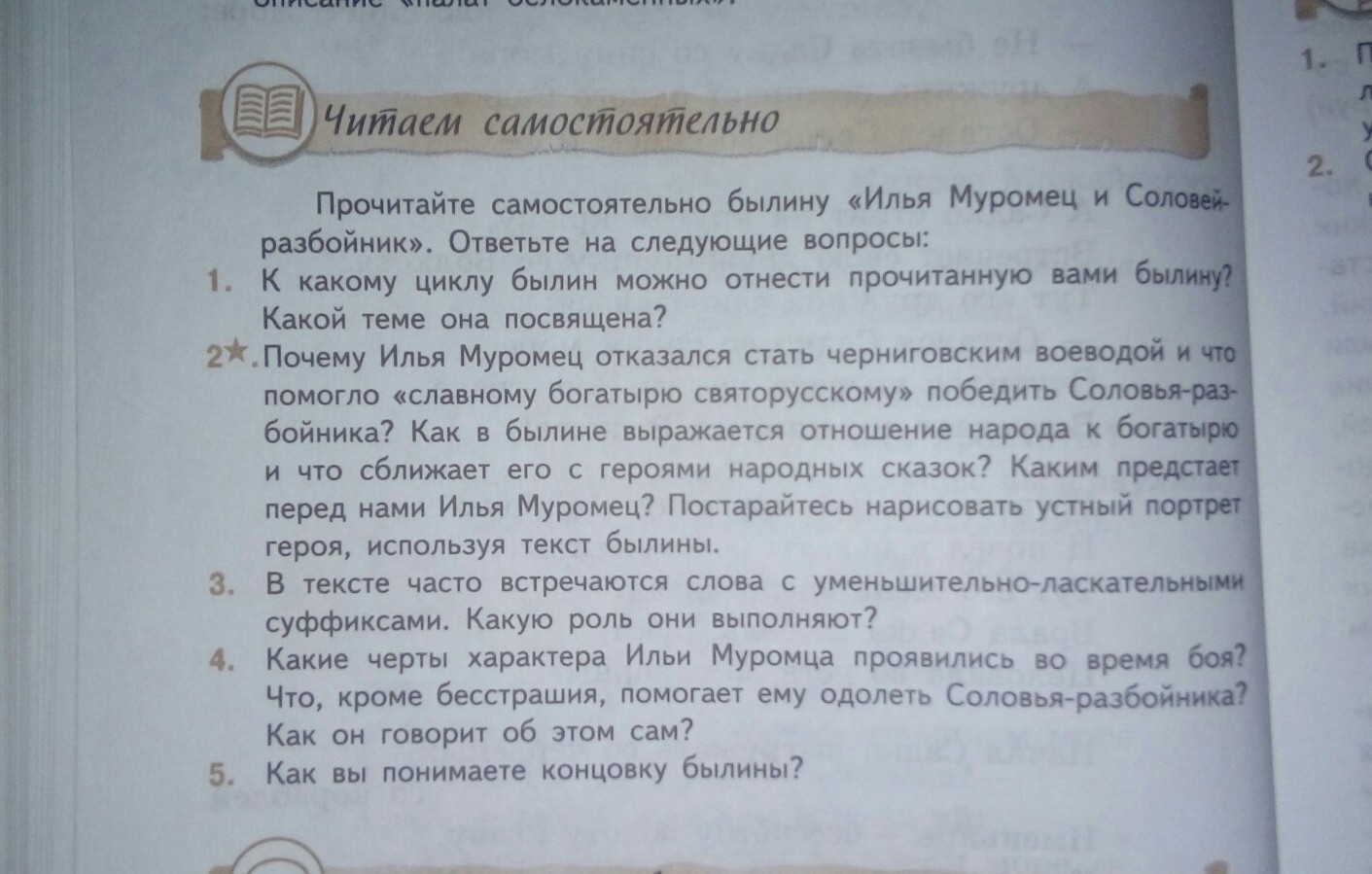 4)Во время боя проявилось бесстрашие, умение владеть собой. Илья Муромец твердо верит в то, что Соловью-разбойнику пора прекратить разбойничать, «полно вдовить жен молодых, полно сиротить малых детушек». Герой совершает свой подвиг не ради славы, а ради людей.