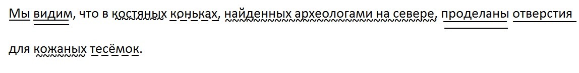 Нужна схема предложения!!!(синтаксический разбор).Мы видим ,что в костяных коньках ,найденных археологами на севере, проделаны отверстия для кожаных тесёмок.