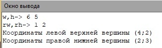Println($'Координаты правой нижней вершины ({ox-h/2};{oy+w/2})'); // - половина ширины прибавляется и половина высоты вычитается
