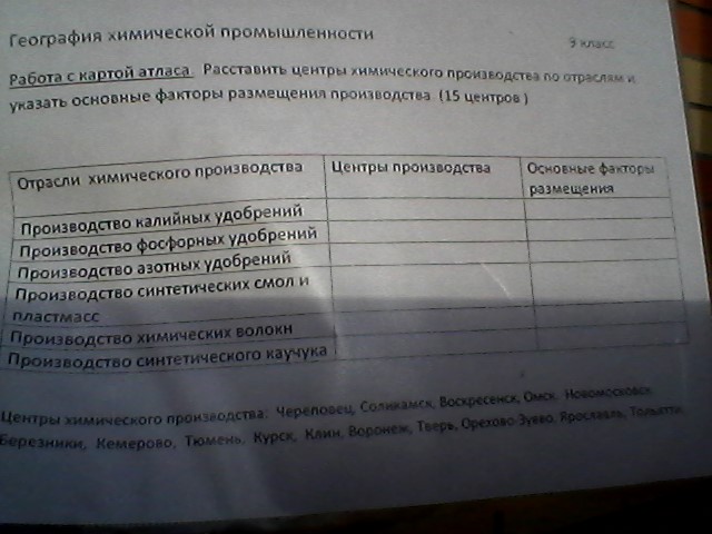 Производство синтетических смол и пластмасс - Омск, Кемерово, Тюмень, Орехово-Зуево - факторы: трудовые ресурсы, водный, сырьевой, энергетический