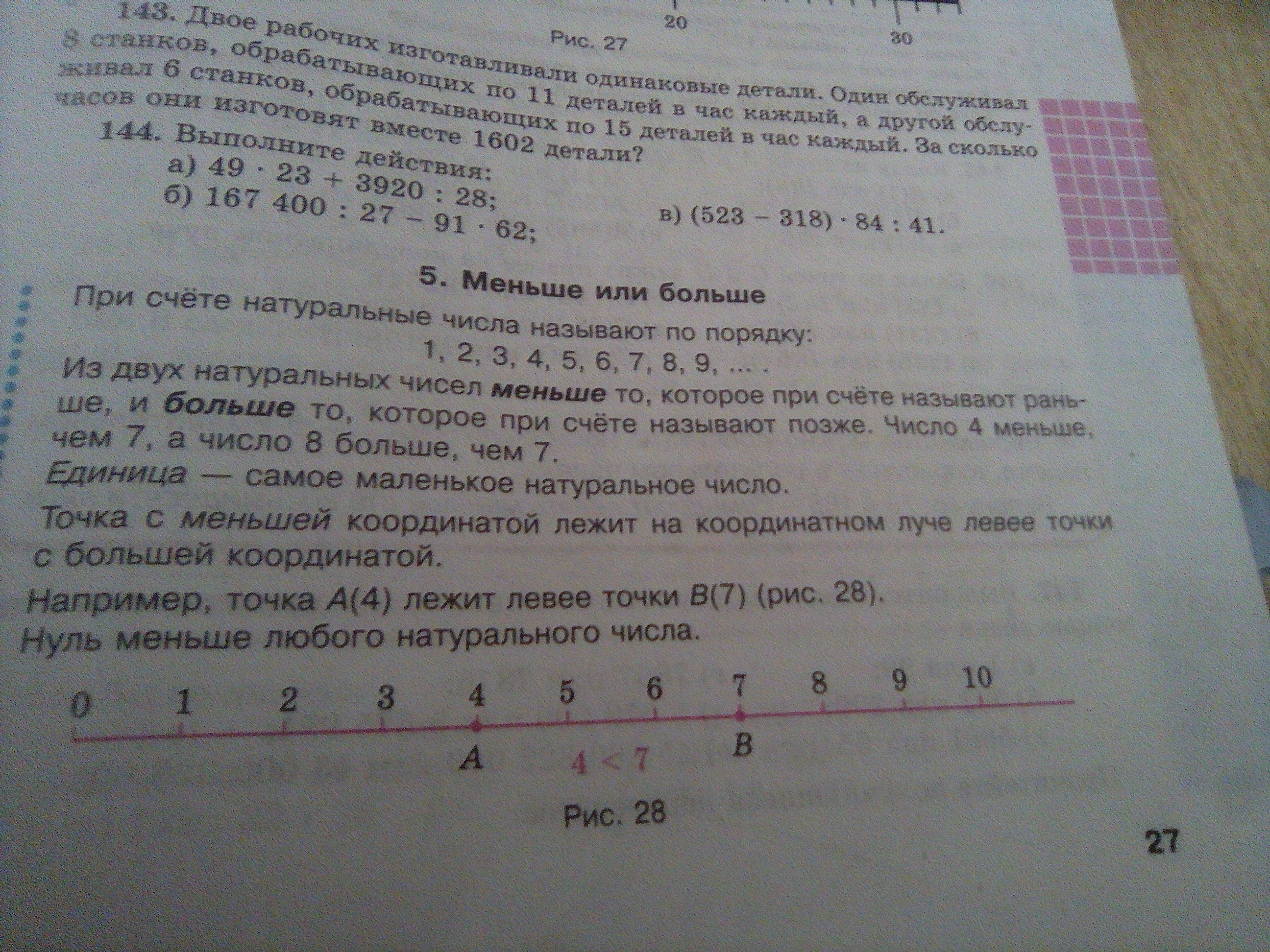 Из двух натуральных чисел меньше то,которое называют раньше,а больше то,которое называют позже. Единица-наименьшее натуральное число.
