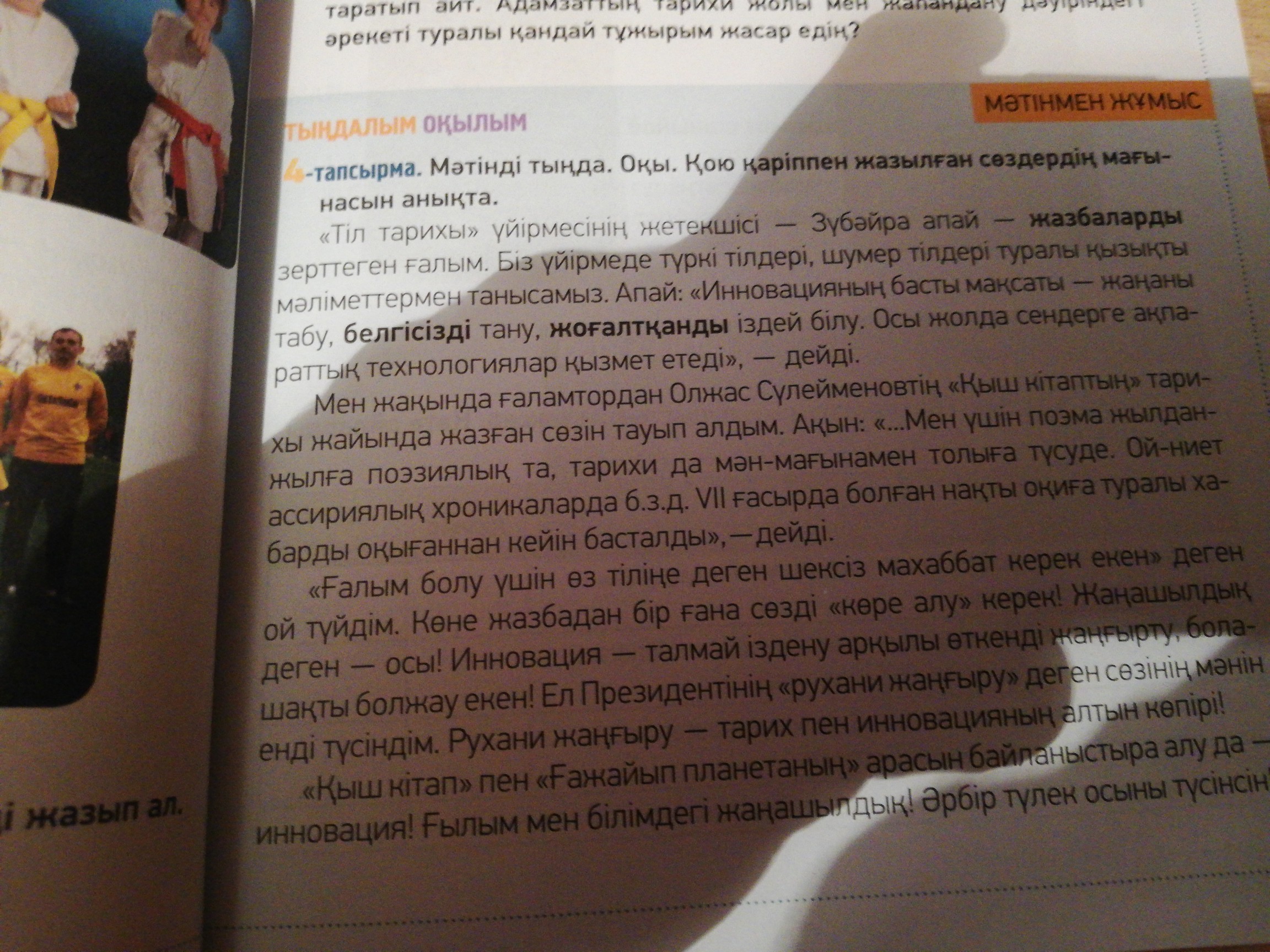 Руководитель кружка "Язык истории" - Зубайра апай - ученый изучавшая записи. Мы в кружке знакомимся с интересными фактами? про турецкий язык и шумерский язык. Апай говорит: чтобы изучать новые инновации, нужно для начала - познавать все новое, неизвестное.