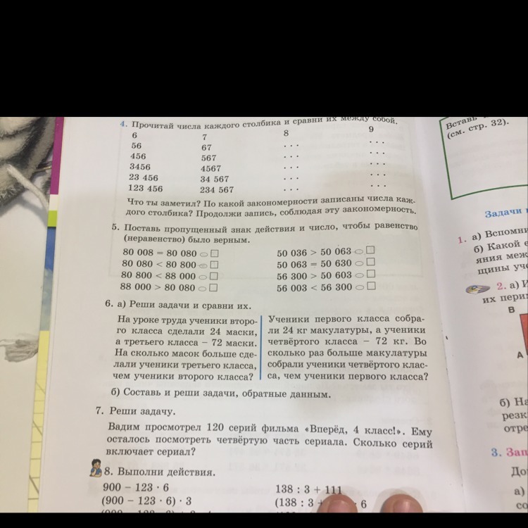 1задача 72-24=48 масок ученики 3 клсса сделали больше 2 класса ответ:48 2 задача72:24=3 кг ученики 4 класса в 3 раза больше собрали мукулатуры
