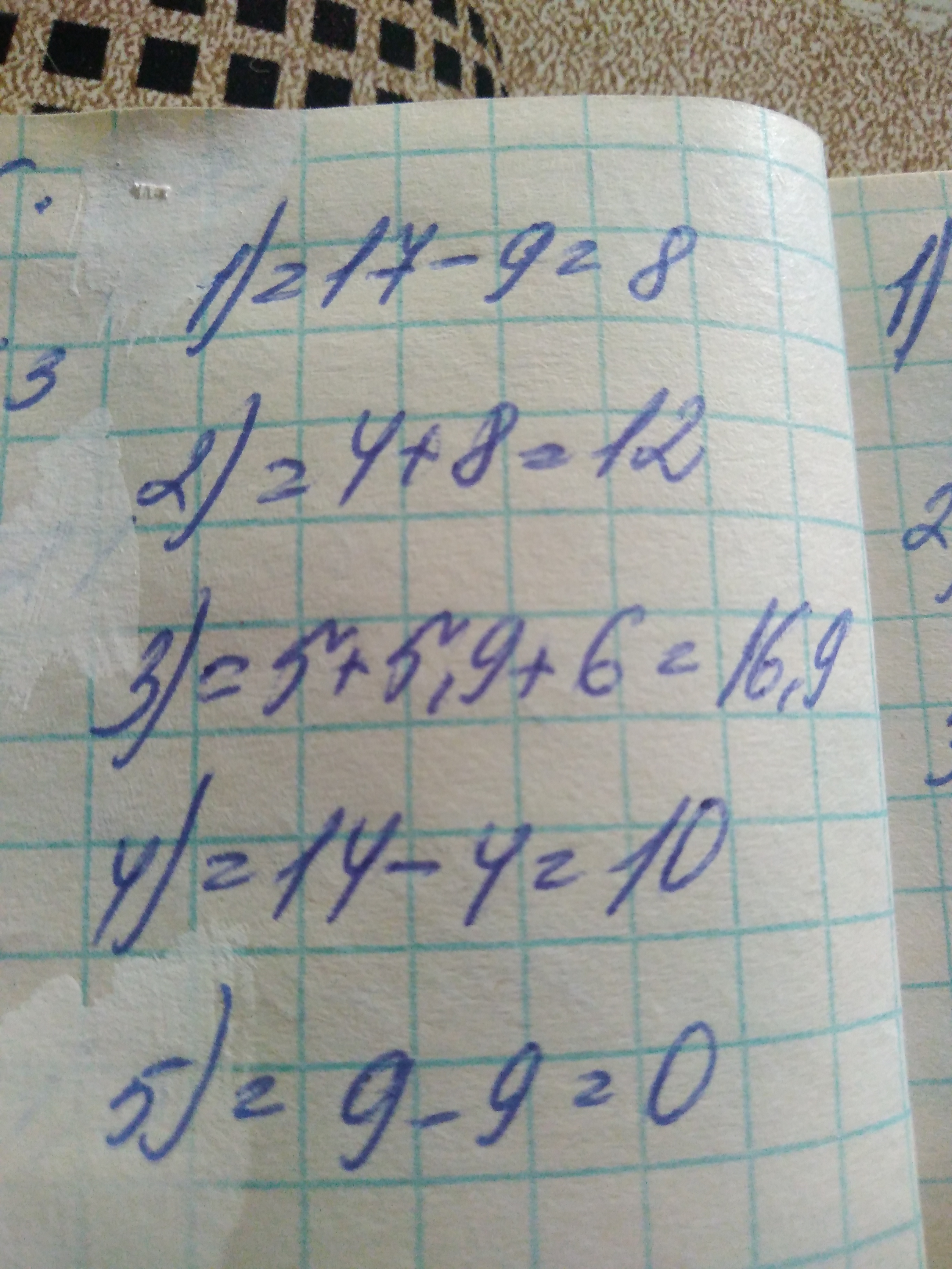 1) 17-(3+6)=8. 2)4+(4+4)=12. 3)(13-8)+5=10. 4)9+(10-4)=15. 5)14-(12-8)=10. 6)(18-9)-9=0