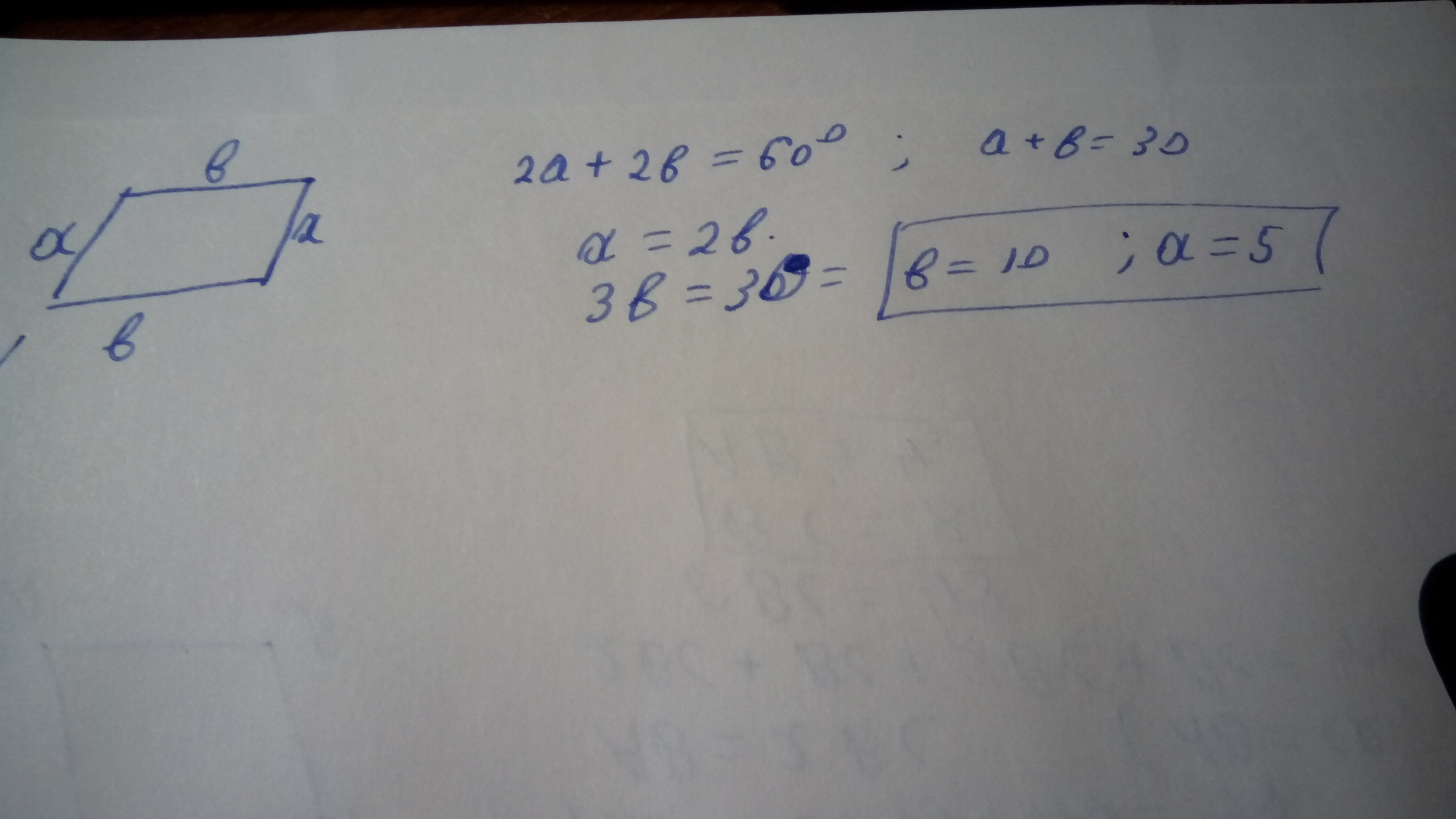 периметр параллелограмма ABCD равен 60 см Найдите стороны если 1 из сторон в два раза больше другой
