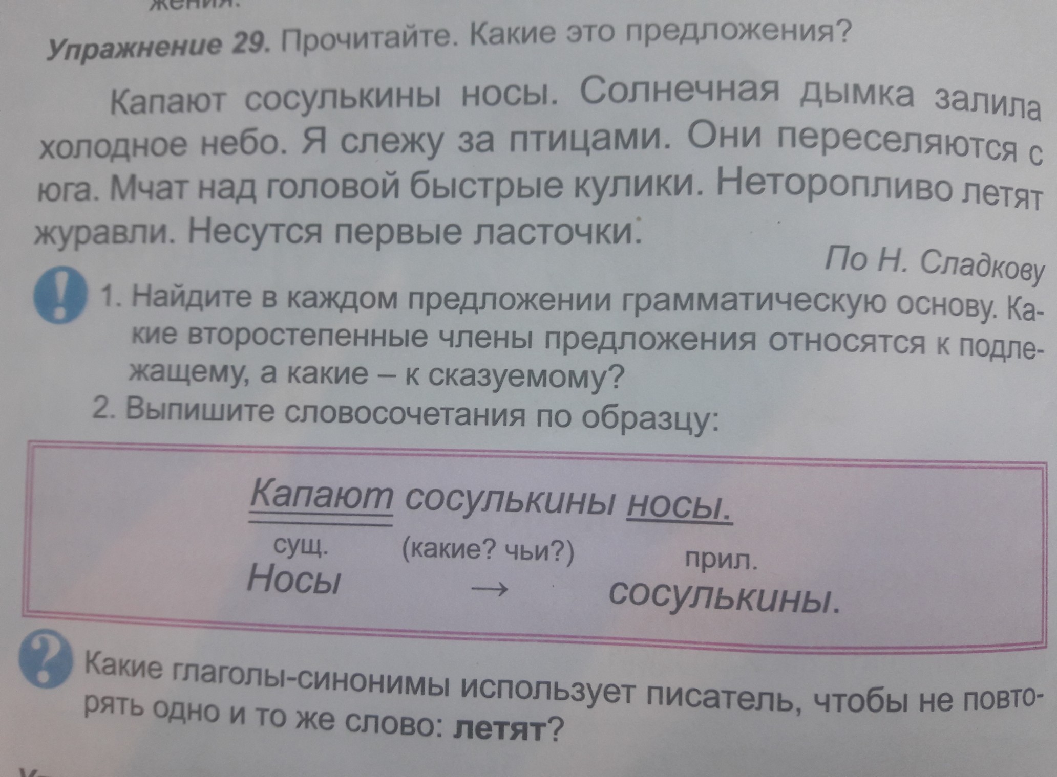 это поветвовательные предложения. копают носы. дымка залила.я слежу.они переселяются.мчат кулики.летят журавли.несуться листочки(это были главные члены а дальше сам)