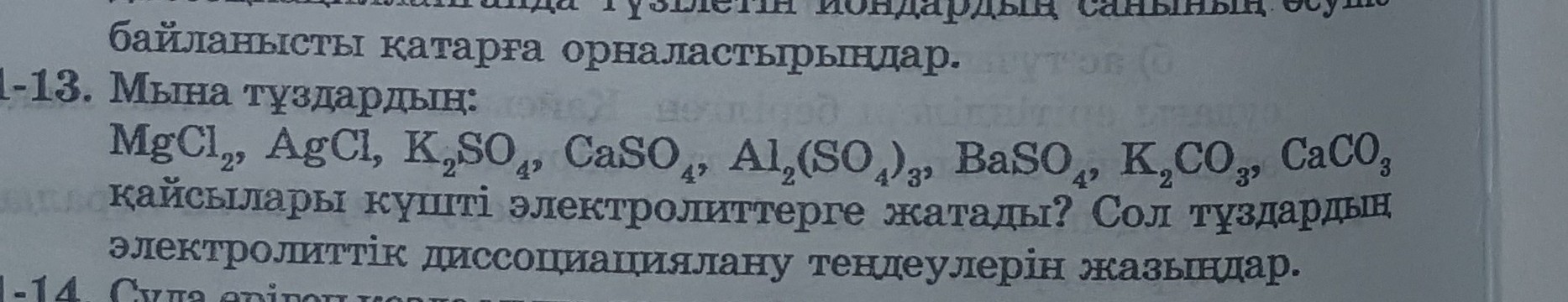 MgCl2=Mg2+ + 2Cl- K2SO4=2K+ + SO4 2- Al2(SO4)3=2Al3+ + 3SO4 2-