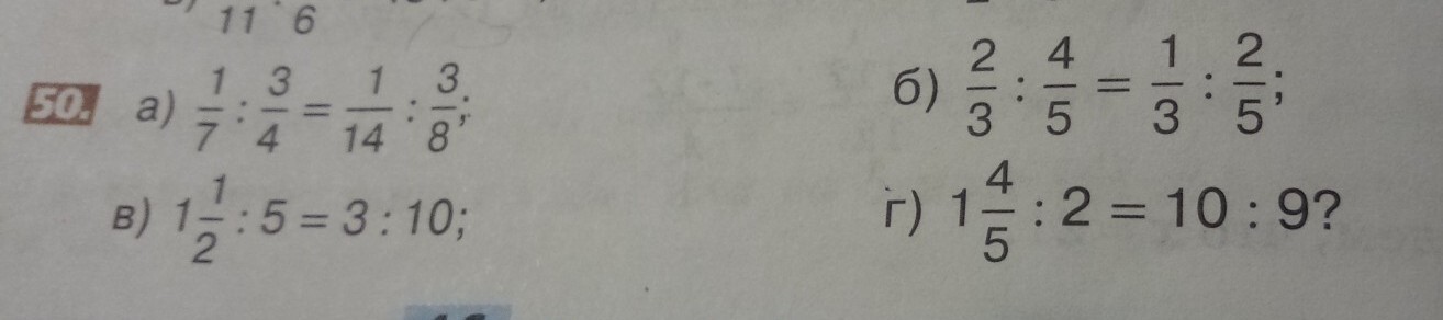б) 2/3 : 4/5 = 1/3 : 2/5