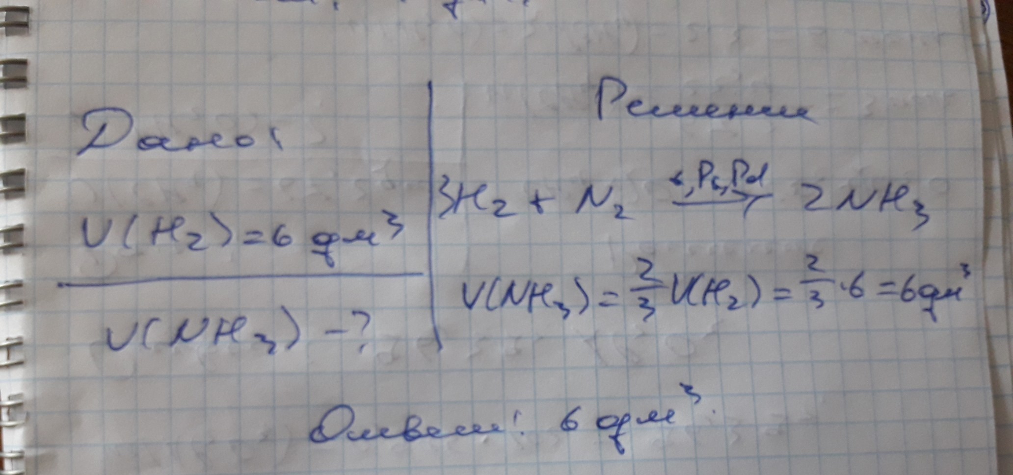 при взаимодействии водорода с азотом образуется аммиак: 3H2(газ)+N2(газ)——