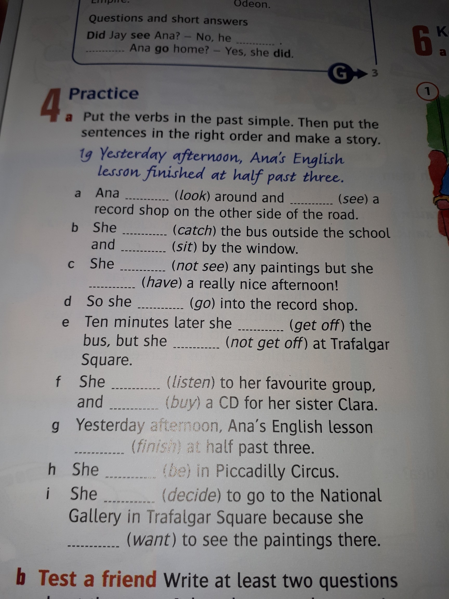 practice put the verbs in the past simple then put the sentences in the right order and make a story