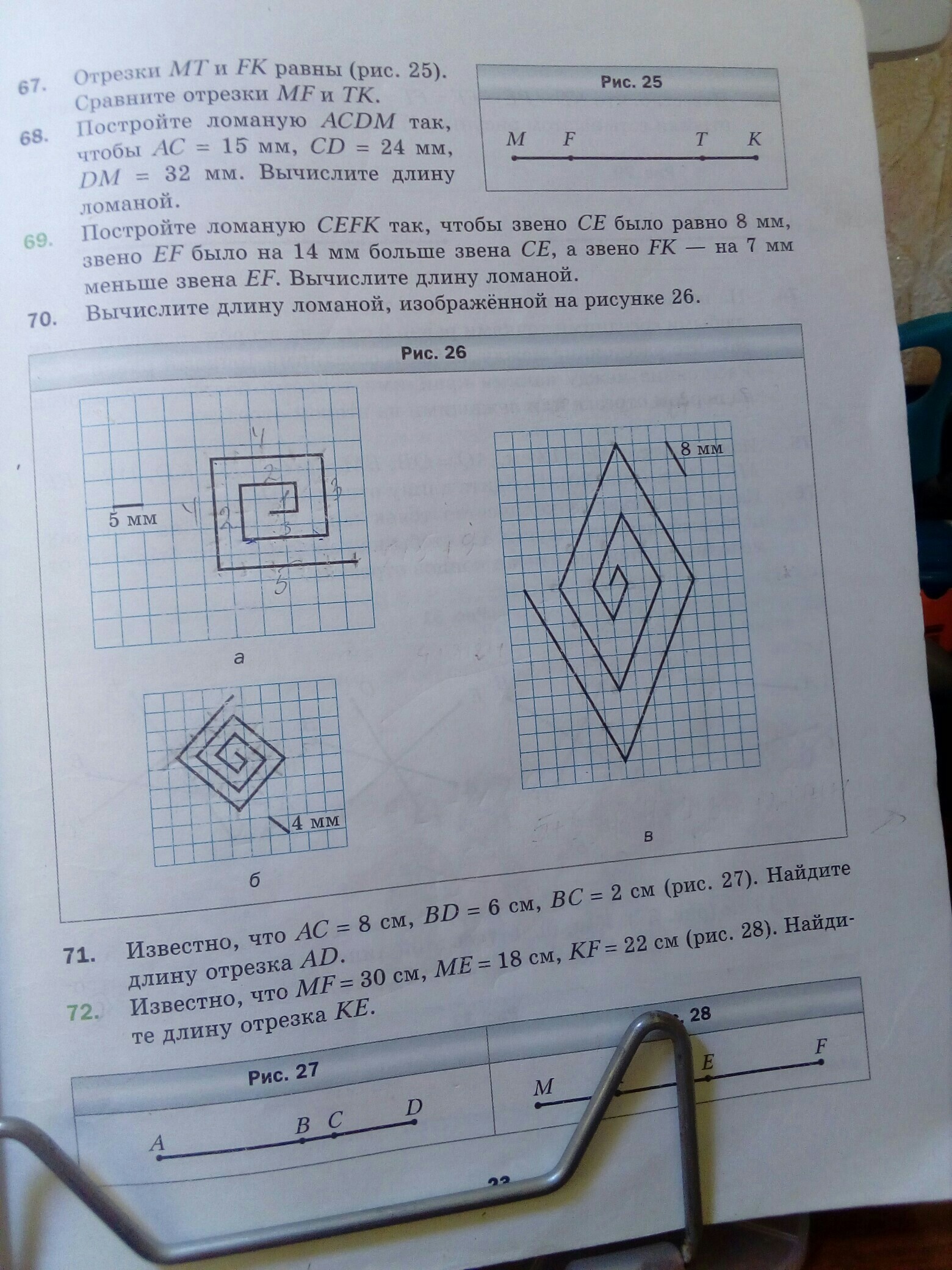 на каждом рисунке нарисован отрезок с указанной длинной, так вот надо сосчитать, сколько таких отрезков вмещает в себя ломаная: