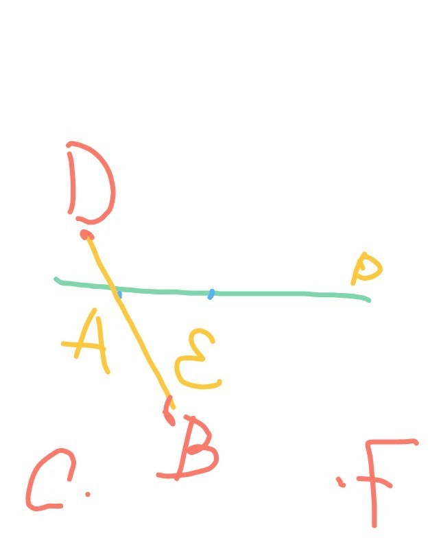 Изобразите прямую p и точки а в с д е f так , чтобы а,e, принадлежали данной прямой, остальные ей не принадлежали, причём d и f принадлежали разным поплоскостям, b и c одной полуплоскости, а отрезок bd пересекал прямую p