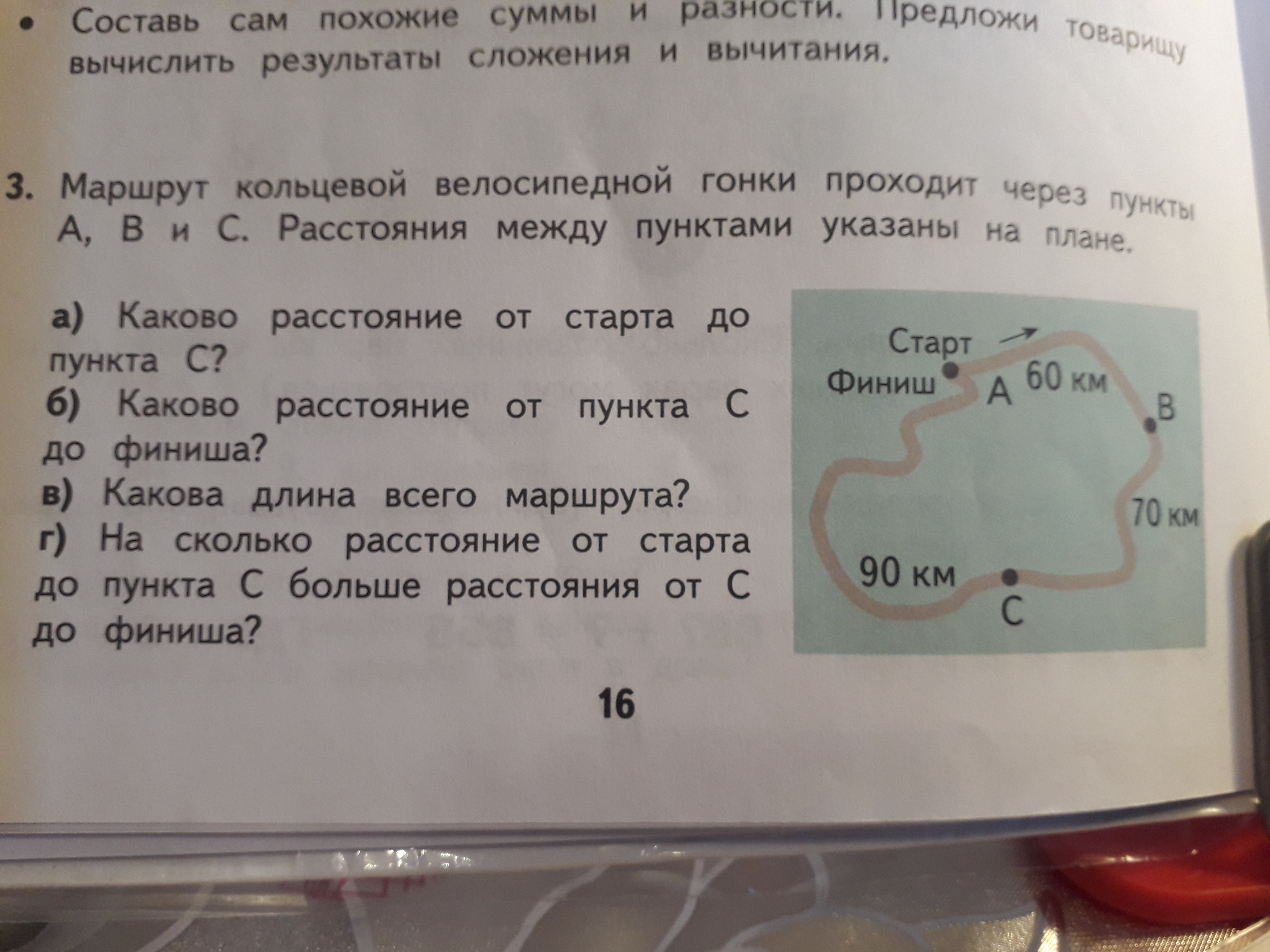 Ответ. а) 130 км б) 90 км в) 220 км г) на 40 км больше.