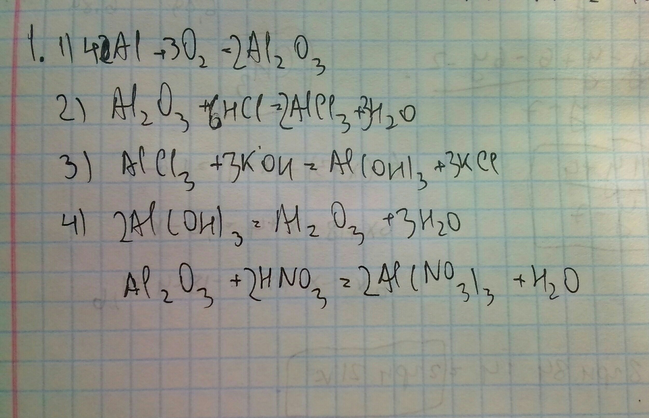 1)Al=Al2O3=AlCl3=Al(OH)3=Al2O3=Al(NO3)3