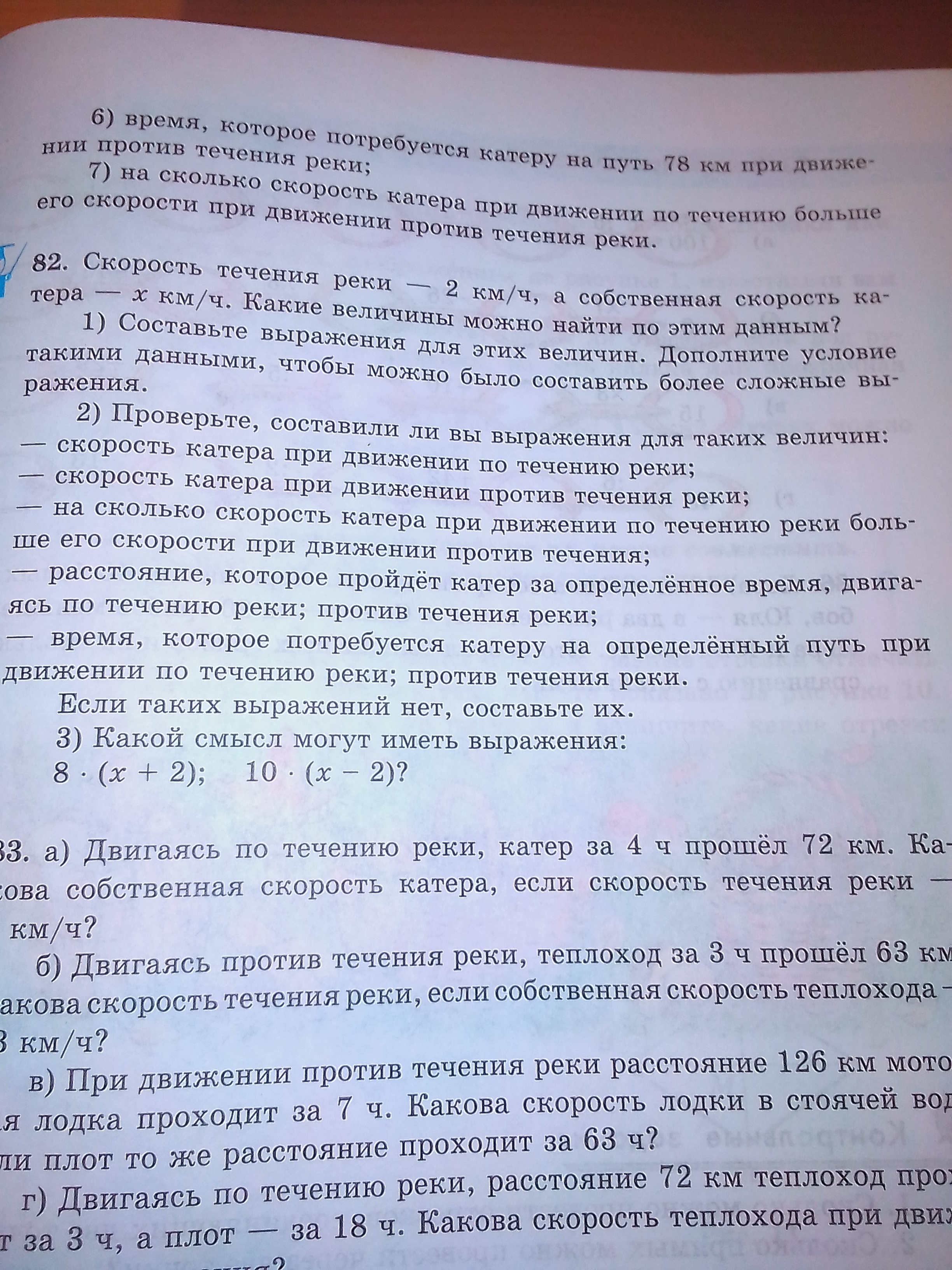 (х+2) км/ч скорость по теч. (х-2) км/ч скорость против теч.