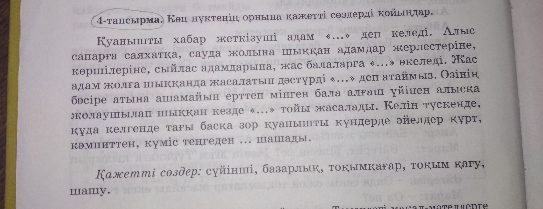 Қуанышты хабар жеткізуші адам сүйінші деп келеді. Алыс сапарға саяхатқа, сауда жолына шыққан адамдар жерлестеріне, көршілеріне, сыйлас адамдарына, жас балаларға базарлық әкеледі. Жас адам жолға шыққанда жасалатын дәстүрді тоқымқағар деп атаймыз. Өзінің бәсіре атына ашамайын ерттеп мінген бала алғаш үйінен алысқа жолаушылап шыққан кезде тоқым қағу тойы жасалады. Келін түскенде, құда келгенде тағы басқа зор қуанышты күндерде әйелдер құрт, кәмпиттен, күміс теңгеден шашу шашады..