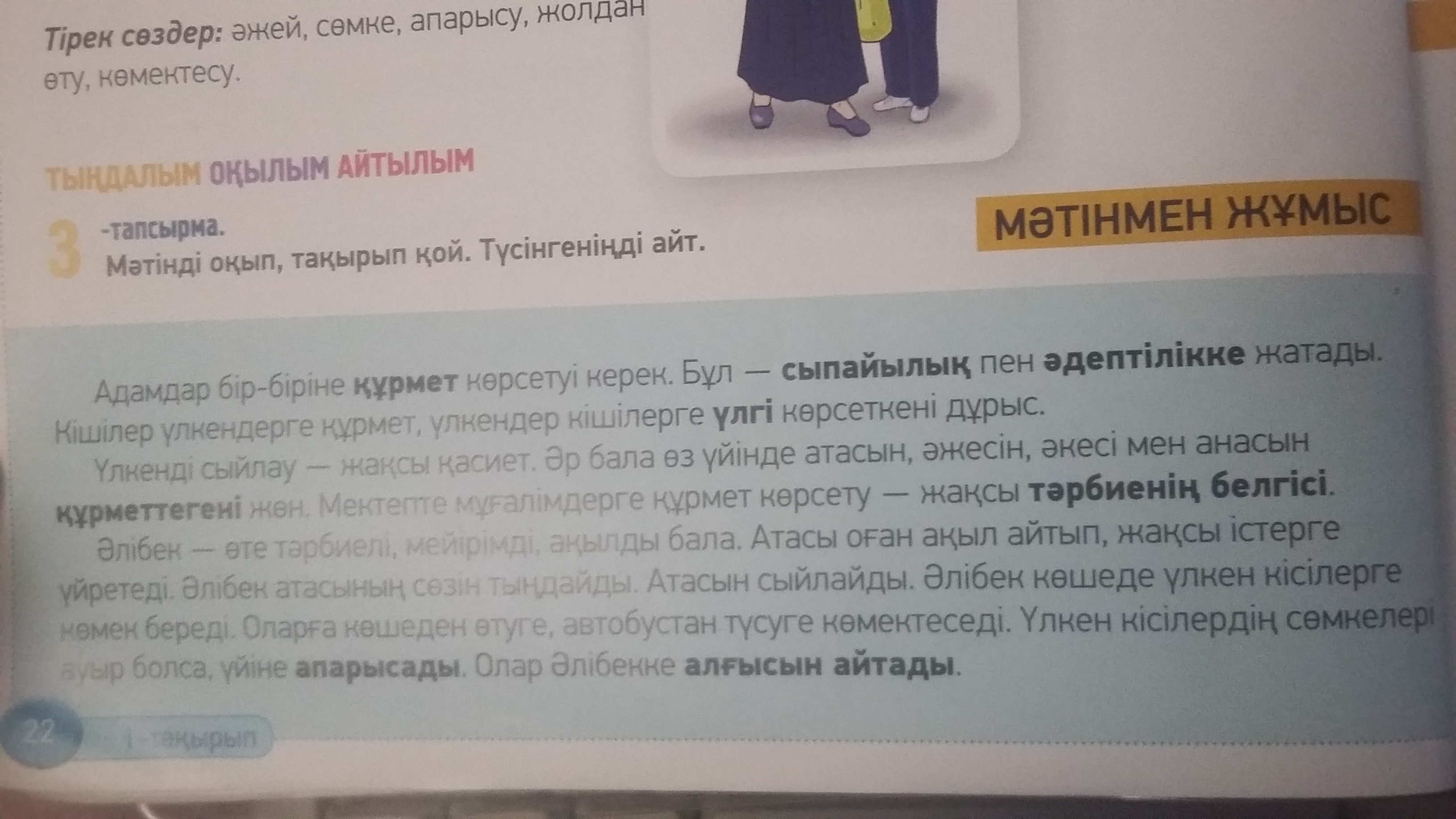 Жалпы есімдер : адамдар,құрмет, сыпайылық, әдептілік,кішілер,үлкендерге,үлгі,қасиет,