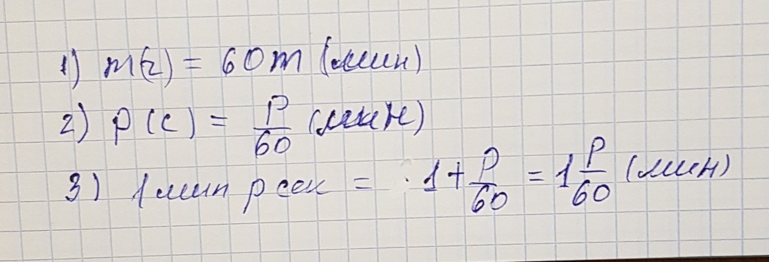 Сколько минут : 1) в m часах ; 2) в p секундах ; 3) в m часах, l минутах и p секундах?