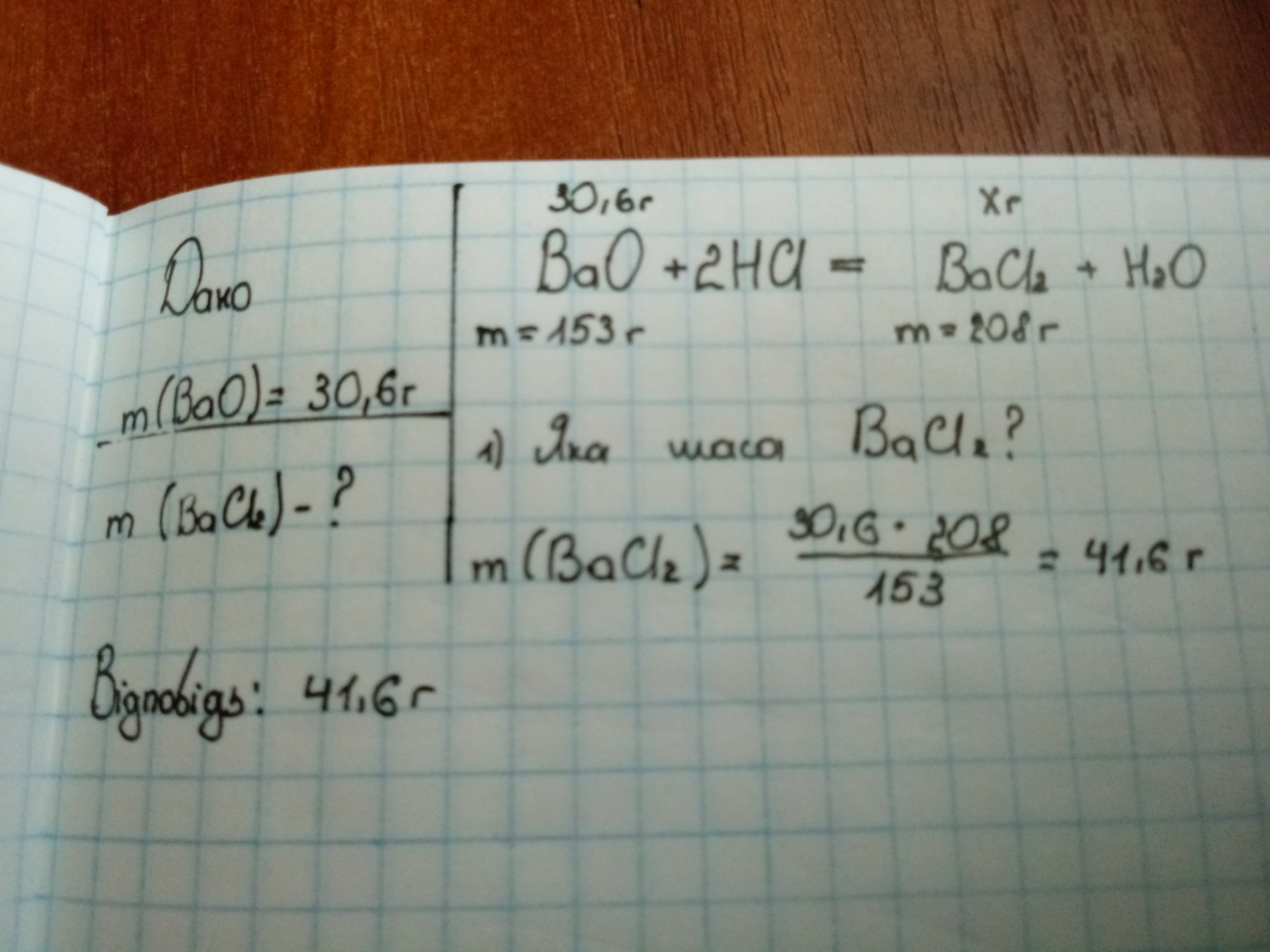Яка маса солі утвориться під час взаємодії 30,6 г BaO з HCl???