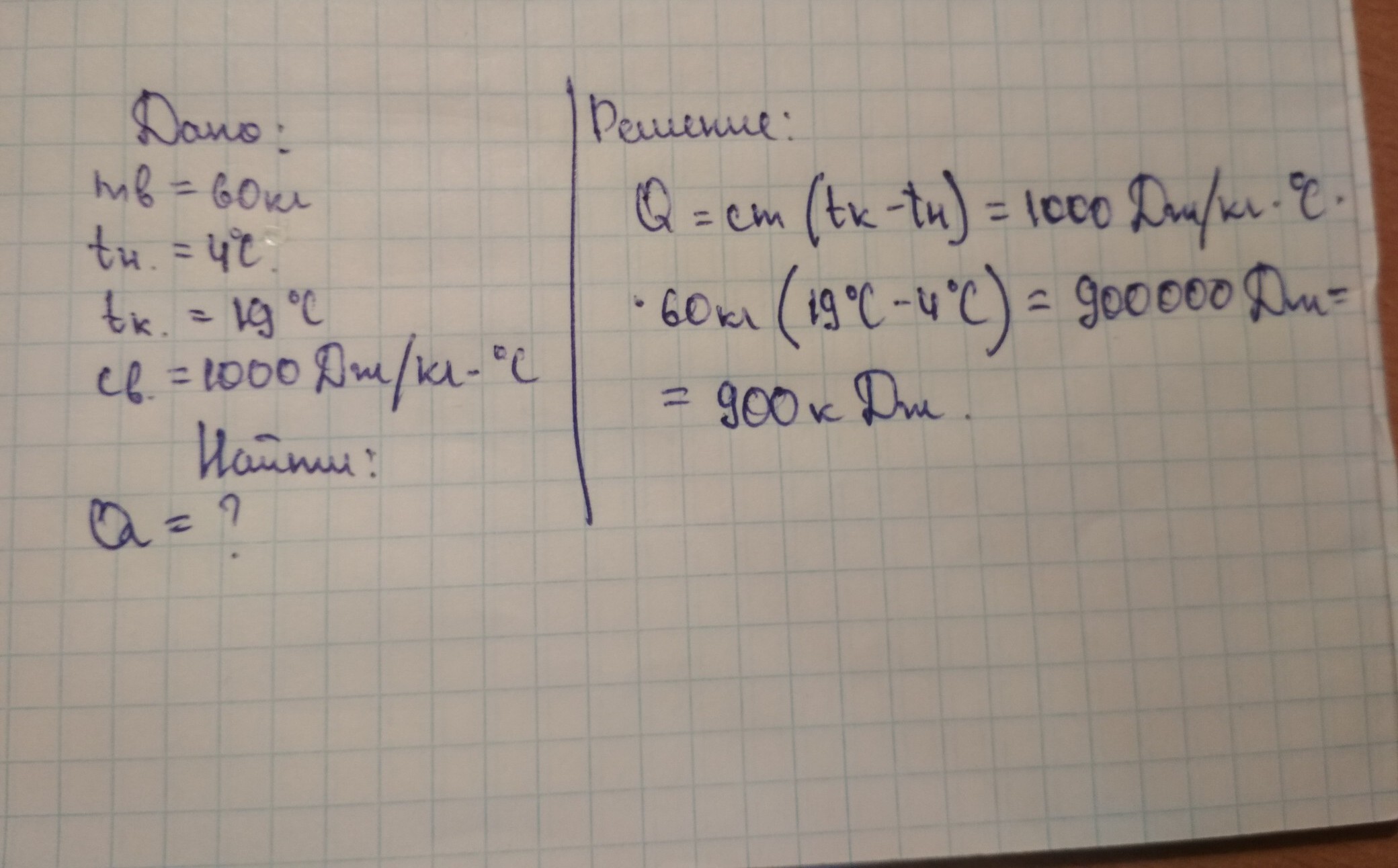 Масса воздуха в комнате 60 кг. Он нагревается от 4оС до 19оС. Какое количество
