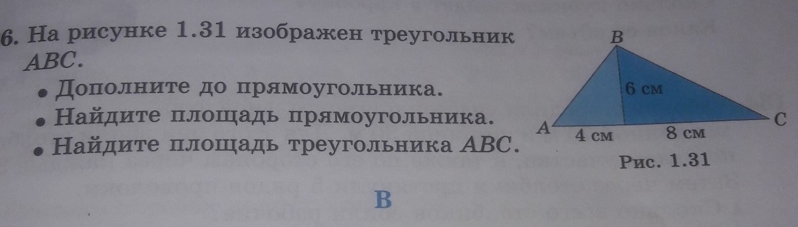 площадь АВС равна 0.5*(8+4)*6=36 см. кв. если добавить слева голубой треугольник,а справа синий то получиться прямоугольник. его площадь равна 12*6=72 см. кв.