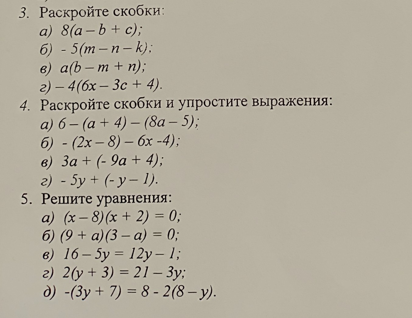 б) -5(m-n-k)= - 5m + 5n + 5k
