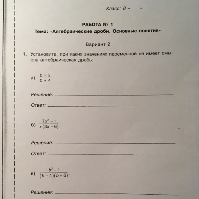 В знаменателе дроби не должно получиться нуля.